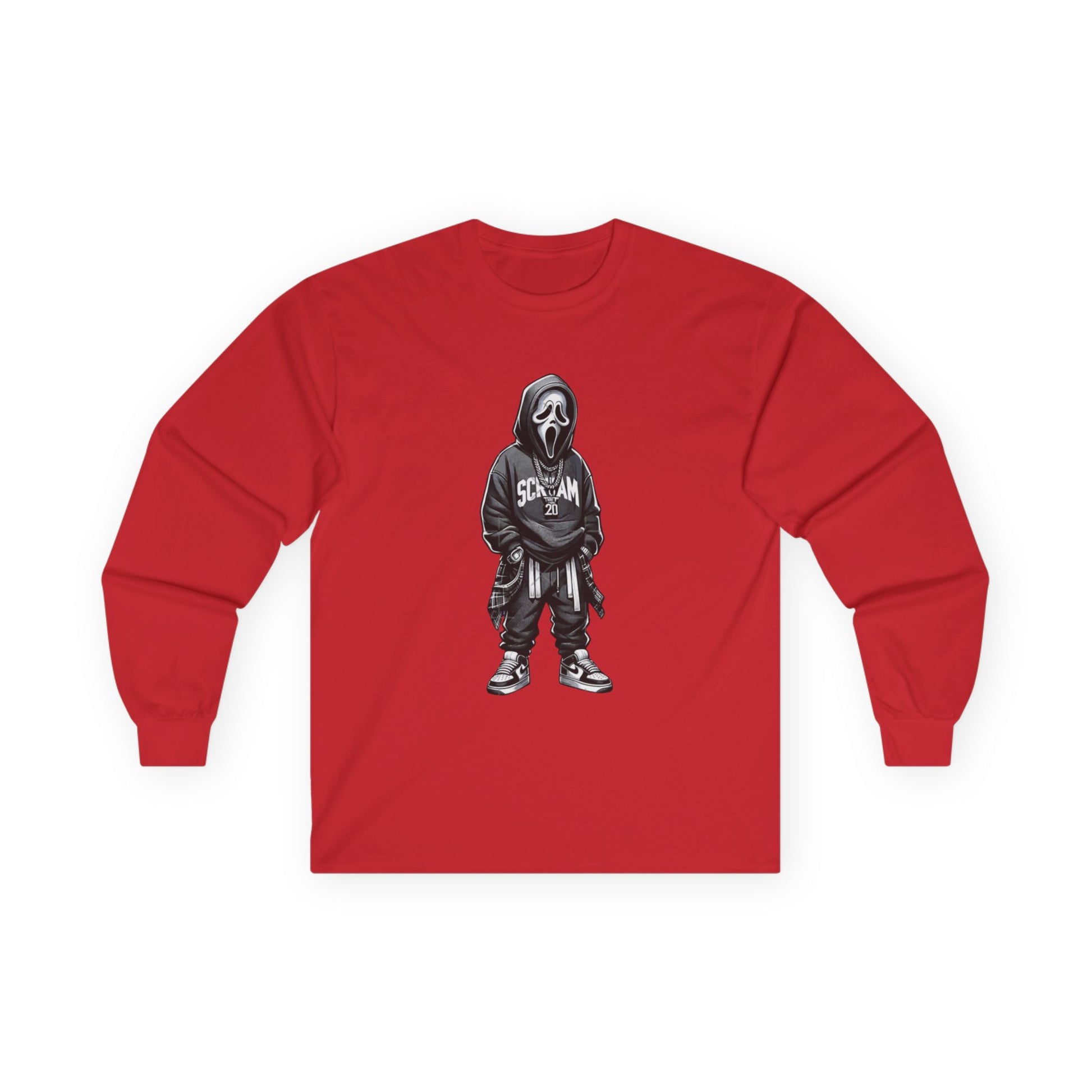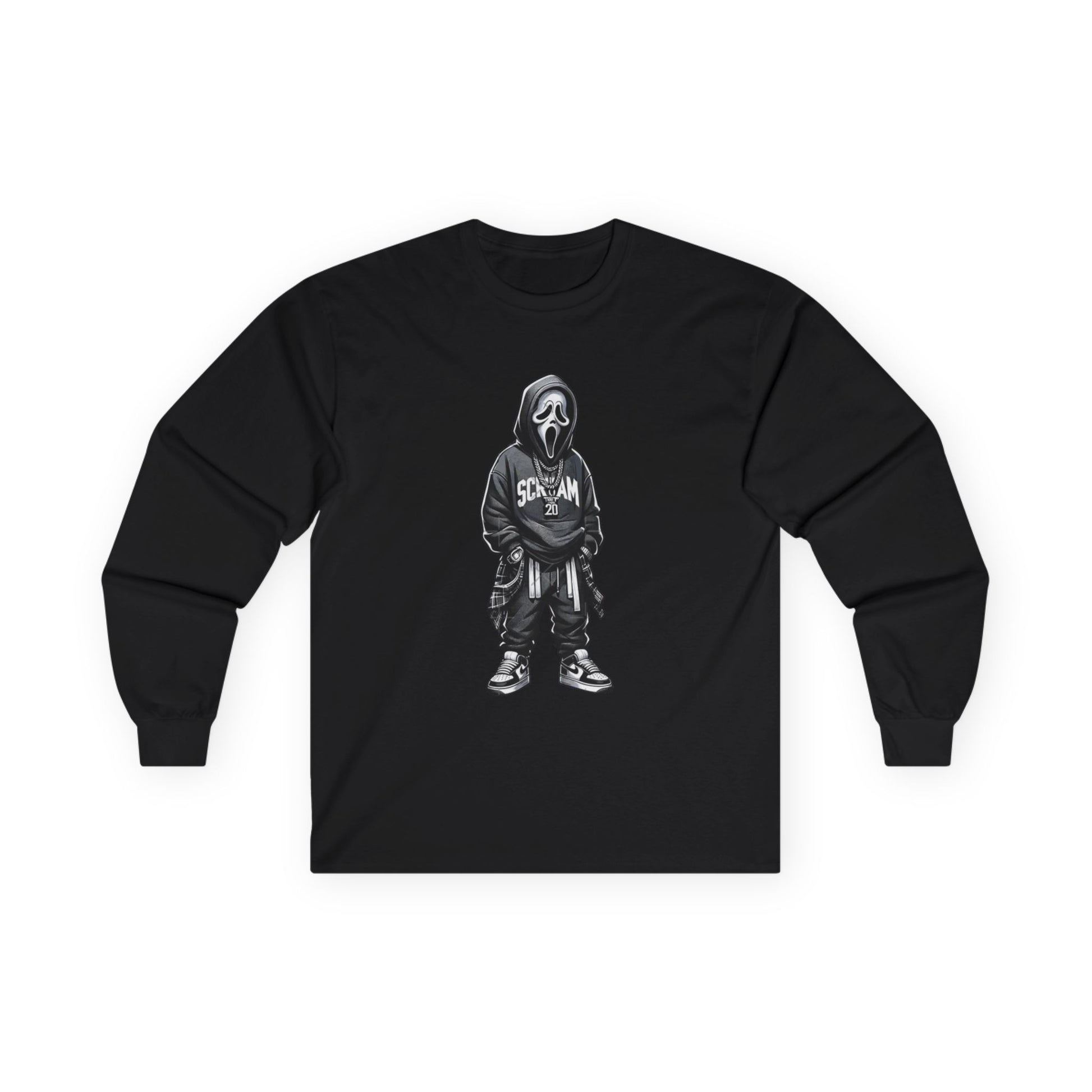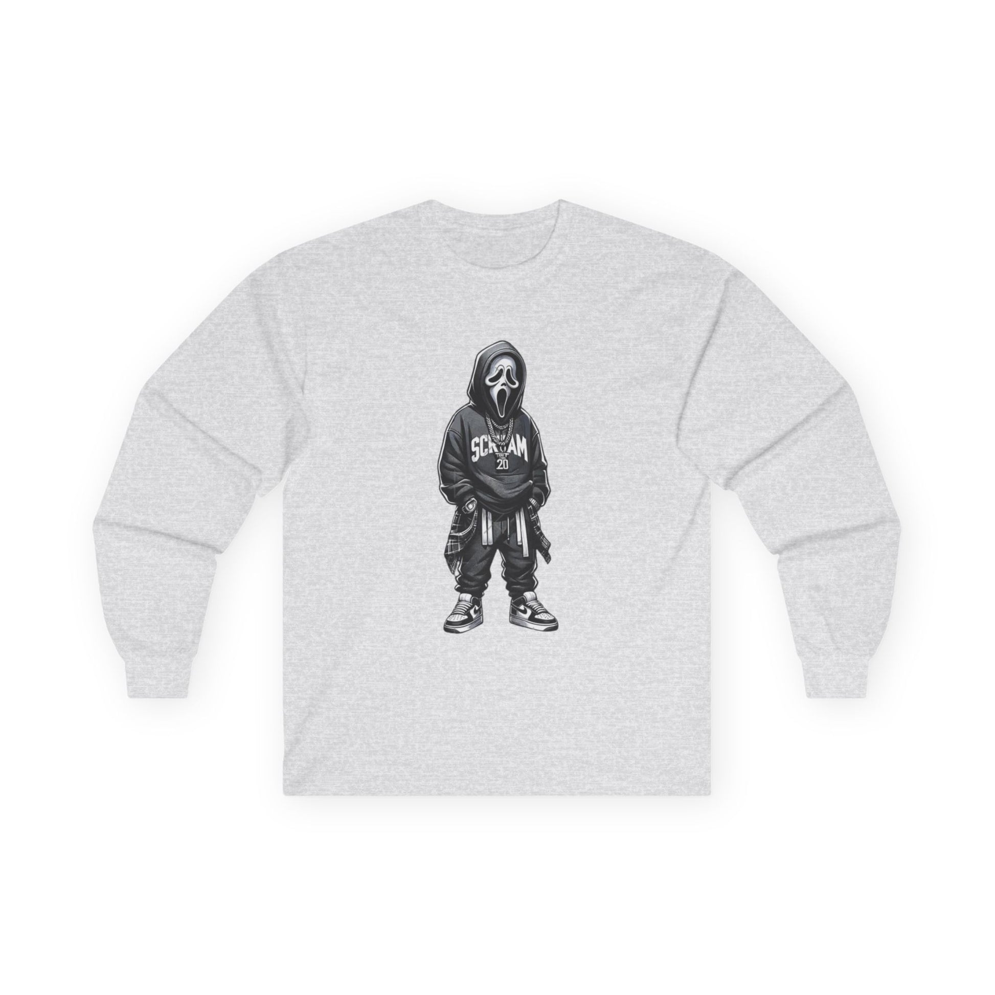 Unisex Horror-Inspired Ghostface Long Sleeve Tee, Trendy Graphic Shirt, Cool Streetwear, Perfect for Halloween, Gift for Fans