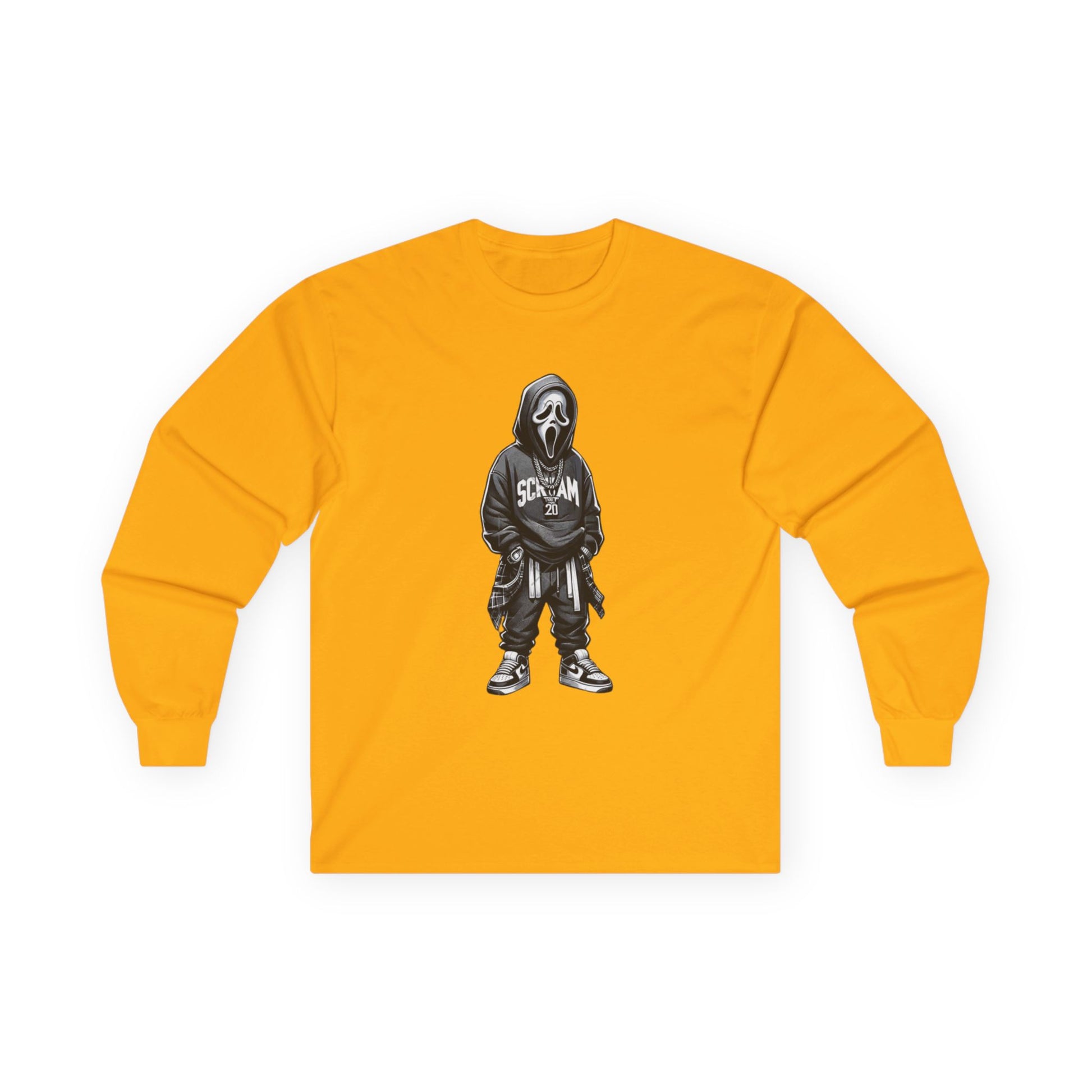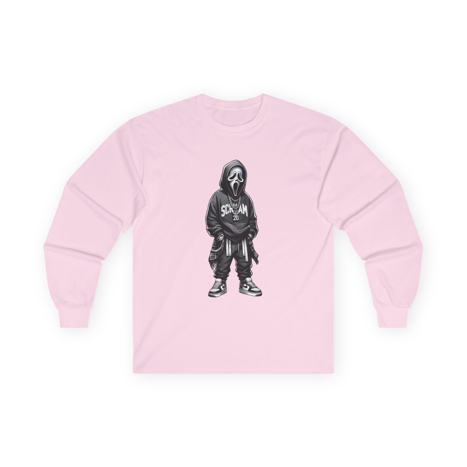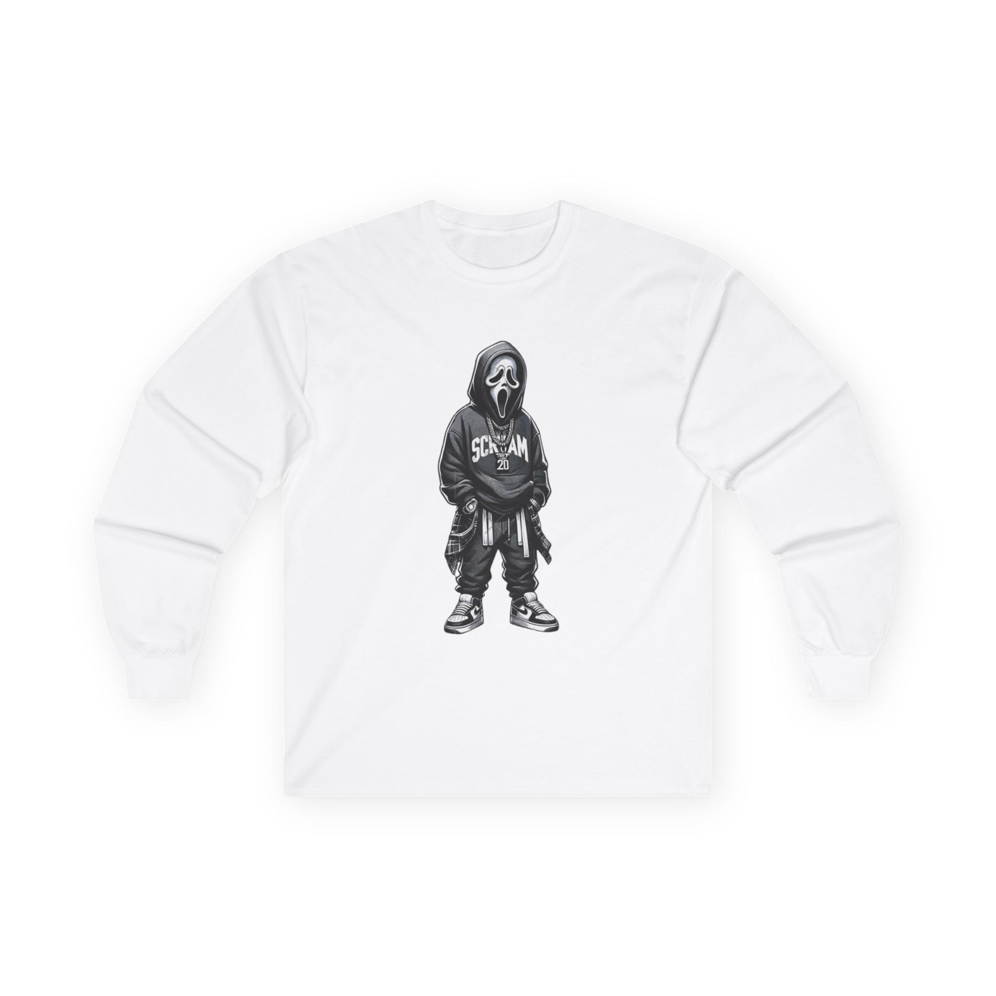 Unisex Horror-Inspired Ghostface Long Sleeve Tee, Trendy Graphic Shirt, Cool Streetwear, Perfect for Halloween, Gift for Fans
